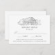 Rustikale Hochzeitskarten mit schwarz gezeichneter Darstellung einer Scheune, die oben auf dem Design auf weißem Hintergrund angezeigt wird. Personalisieren Sie die skizzierten RSVP Karten mit Ihrem gewünschten UAWG, nehmen Sie den Text an/verweigern Sie ihn und wählen Sie das Essen aus.
