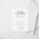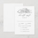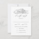 Rustikale Hochzeitskarten mit schwarz gezeichneter Darstellung einer Scheune, die oben auf dem Design auf weißem Hintergrund angezeigt wird. Die RSVP-Karten für die Hochzeit der Scheune sind in eleganter schwarzer Kalligrafie "freundlich zu antworten". Personalisieren Sie die skizzierten RSVP Karten mit Ihrem gewünschten UAWG, nehmen Sie den Text an/verweigern Sie ihn und wählen Sie das Essen aus.