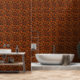 Rustikal braun schwarz gearbeitete Tapete aus geflochtenem Leder.