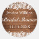 Brautparty Datum und Name Hochzeitsaufkleber. Rustikaler Stil mit Holzvertäfelungen und weißer Spitzendekoration. In unserem Shop sind weitere Artikel in diesem Stil erhältlich. Sie können das Design weiter bearbeiten, Farben, Schriftart ändern und zusätzlichen Text hinzufügen, indem Sie auf den Link "Weiter anpassen" klicken.