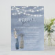 Dieses rustikale Design zeichnet sich durch eine blaue Aquarellstruktur aus, die mit einem ombre-Effekt gemalt wurde. Antiquitätenflaschen mit Olivenzweig und Eukalyptus schaffen eine einzigartige und bezaubernde Atmosphäre der alten Welt, beleuchtet mit schönen Saitenleuchten. Alle entstanden aus originalen Kunstwerken von Lara. Weiße und blaue Typografie unterstreichen Ihre besondere Veranstaltung und lassen sich einfach mit Ihren eigenen Details anpassen.