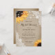 Rustikale Blumendusche mit Sonnenblumen auf einem Einbruch und Spitzen-Hintergrund.