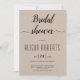 Cursive Skriptkalligrafie Kraftpapier rustikale Hochzeitsbrauendusche Einladung. Auf der Rückseite befindet sich ein geometrisch-schwarz-weißes Muster auf braunem Kraftpapier.