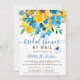 Ein rustikales, blumenfarbenes Brautparty mit langen Entfernungen per Post mit gelben Sonnenblumen, blühendem Blumenstrauß und elegantem Schriftart.