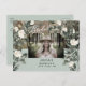 Rustikale Brautdusche Einladung. Weiße Blumen, Blattwerk und Holz. Dusche. Light Sage. Holzzaun. Postkarte. Foto. Filter auf Foto aufgetragen. Dusche.