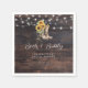 Rustikales Blumenpapier Napkins - mit rustikalen Leder Cowboystiefeln, die mit Sonnenblumen und Grünpflanzen auf einem Stallholzboden verziert sind, und leuchtenden Lichtern über dem Kopf. Napkins sind Teil einer Sammlung von Brautpartys.