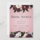 Dieses schlichte, rustikale Brautparty-Brunch-Design besticht durch eine realistische Bordeaux-, Creme- und Rosa-Blume mit dunkelgrünem Blattwerk auf einem staubigen rosa Hintergrund. Der Text wird auf einem weichen, weißen, blurfarbenen Oval-Overlay angezeigt. Romantisch und elegant. Erstellt von der einfachen Farmhouse Press.
