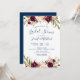 Rustikales Burgunderblumenmarine-Blau-Brautparty Einladung