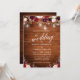 Rustikales Holz, modernes Kalligrafie-Script, Watercolor Burgundy Floral Wedding Einladung mit Burgund und Rosen. Glühende Streichlichter mit Mason Jars.