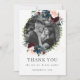 Diese schicke Dankeschön-Karte bietet eine schöne Aquarellbordeur, marineblau, blütenrosa Blütenblüte und grüne Blattwerk Kranz. Zeigen Sie Ihr Lieblingsheihungs-Foto im hübschen Blumenrahmen. Entworfen, um unsere Elegant Blooms Hochzeitskollektion zu ergänzen. Personalisieren Sie es einfach und schnell mit Ihren Daten, drücken Sie einfach die Schaltfläche Anpassen, um den Stil und die Platzierung des Textes weiter zu ordnen und zu formatieren. c) Das glückliche Cat Studio