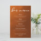Rustikales Burnt Orange Bar Menu für Hochzeiten im