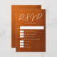 Befolgen Sie den Herbstfarben-Trend mit unserer Hochzeit im Herbst RSVP-Karte mit verbrannten Orange- bis Braungradienten. Einfache weiße Typografie auf rustikalem Hintergrund für einen minimalistischen Look. Bohemische Farbtöne, die an Terracotta-Ton erinnern, heben Ihre Auswahl auf dieser angesagten Fade-Karte hervor.
