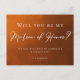 Folgen Sie dem Herbst Trend der erdigen Töne mit unserer verbrannten orange bis braun Gefälle wird Sie meine Matron der Ehre Postcard Einladung. Einfache weiße Typografie auf rustikalem Hintergrund für einen minimalistischen Look. Bohemische Farbtöne, die an Terracotta-Ton erinnern, unterstreichen Ihre elegante Kalligraphie auf dieser trendigen Brautparty-Angebotskarte.