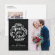 Dank an Ihre Familie und Freunde mit diesem rustikalen Foto Hochzeit danken Ihnen Postcard mit weißen Handschriften auf Imitaten Chalkboard Hintergrund. Passen Sie diese Postkarte an, indem Sie Ihr eigenes Foto und Ihre Daten hinzufügen.