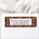 Rücksendeadressen-Aufkleber mit einem lustigen Camping-Motivmuster. Set auf rötlich-braunem Hintergrund. Elemente im Muster sind ein Lagerfeuer, ein Zelt, Gitarre, Schaufel und Rucksack. Ein weißes Rechteck oben mit Ihren personalisierten Informationen.