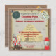 Rustikale Camping-Party Einladung mit altmodischem Zelt, Laterne, Kantine, Krüge mit Kaminfeuer und Brand für Bratschwärme und Hotdogs auf altem Vintagen Papier mit Tierspuren Set vor einem Holzpaneelhintergrund. Ideal für ein Party im Ruhestand, ein Wiedersehen oder eine Geburtstagsparty für jedes Alter! Handgezeichnete Abbildung von McBoo. Bitte kontaktieren Sie mich für besondere Änderungen!