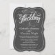 Elegantes Chalk Board Die Hochzeitseinladungen - Wirble, lockige, extravagante Swooshes und schöne Retro-Typografie im Viktorianischen Stil machen eine auffällige Schwarz-Weiß-Hochzeitseinladung. Fügen Sie einfach die Braut- und Bräutigamen und Hochzeitsinformationen in dieser leicht zu verwendenden Vorlage hinzu. von einem Vintagen Kalkbrettplakat aus der Jahrhundertwende, bietet dieser Jugendstil verzierten Swash, Wirbel und Banner, die handgezeichnet Buchstabenkunst auf kohlegrauem Hintergrund. Der individuelle Einladungstext ist ein schöner Mix aus klassischer Schriftzeichen-Optik mit dekorativen Schriftzeichen, die sowohl für formale als auch für semiformale Themen geeignet sind. Lässiger, aber eleganter moderner Stil ist ideal für moderne Hochzeiten mit einer Touch von raffiniertem, aber romantischem rustikalem Charme für traditionelle Paare. Bitte kontaktieren Sie uns für Hilfe bei der Anpassung, wenn Sie zusätzlichen Platz für Ihre Hochzeitsdetails benötigen. Andere Größen und Stile, zusammen mit den passenden Porto-Briefmarke, die Koordinierung der Brautpapiere, Hochzeitspaketzubehör und Duschfavoriten. © März 2014 Wedding Trendy. Elemente dieses Designs wurden für die kommerzielle Nutzung lizenziert — alle Rechte sind durch das US-amerikanische und internationale Urheberrecht geschützt und dürfen nicht ohne Genehmigung oder vorherige Zustimmung der Originalkünstler und/oder ihrer Agent zur Lizenzierung reproduziert oder veröffentlicht werden.