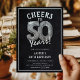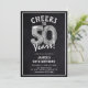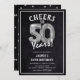 Feiern Sie 50! Diese 50. Geburtstagsfeier lädt mit dem Titel 'Feiern bis 50 Jahre!' ein. Mit einem rustikalen Chalkboard-Hintergrund, Silbernummer 50 Helium-Ballons, trendiger weißer Typografie und einer einfachen Geburtstagsgeschenk-Vorlage, die leicht zu anpassen ist.