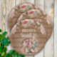 Sweet 16 Geburtstagsparty Teller, die auf einem rustikalen Holzboden mit Cowgirl Stiefeln und rosa Rosen entworfen wurden. Personalisiert mit dem Namen des Ehrengast.