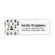 Adressieren Sie Etiketten mit einem rustikalen Western Geschmack. Entworfen mit einem Haufen niedlicher grüner Kakteen in einem sich wiederholenden Muster. Insbesondere grün gefärbte Kakteen in allen möglichen Formen und Größen, die jeweils in ihrem dunkelblauen Blume-Topf sitzen. Kleine dekorative Dreiecke dazwischen. Whimsical lustige Illustration.