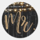 Rustikales dunkles Holz & String Lights Gold Bride Runder Aufkleber