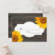 Rustikales dunkles Holz und Sonnenblumen, Hochzeit Platzkarte