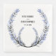 Eine trendige, rustikale Hand hat einen halben Kranz aus Stielen, schwarzen, weißen und staubigen blauen Blätter und schwarzen Beeren mit Namen und numerischem Datum in einem rustikalen Blockschrift gezeichnet.