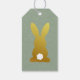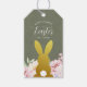 Eleganter Ostertag mit personalisiertem Geschenkschild mit einem goldenen Hasen mit flauschigem Schwanz, schönen pastellfarbenen Aquarellfarben-Blume und stilvollem simuliertem olivgrünem Kraftpapier-Hintergrund. Ideal für Ostergeschenke oder Ostergeschenke. Anpassen mit kurzem Gruß und Namen.