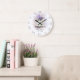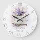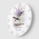 Ein rustikales Bauernhaus, moderne Hütte, elegante, personalisierte Hochzeitstag-Sake-Uhr mit einem Aquarell-Gemälde eines Lavendel und Spitzen (das ist ein digitaler Effekt, nicht echte Spitze) und den Worten "Hochzeitstag" in eleganter Kalligraphie, sowie römische Zahlen für das Uhrengesicht. Ein schönes, individuelles Hochzeitsgeschenk oder Hochzeitsjubiläum für ein junges - und junges - Ehepaar, das sein 1., 3., 5., 10., 25. oder 50. Jubiläum feiert.