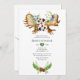 Trendy wilde waldlandliche Einladung mit handgemalten Aquarellbouquets mit Waldbeeren - Heidelbeere, BlackBerry und Sprigs, Kiefernzapfen, Farne, Federn und Elchhorn.