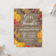 Rustikales Erntedank Dinner Party Herbst Einladung. Rustikaler Holzhintergrund. Country Vintge Barn Retro. Kürbis Verlasst. Freundschaft. Iss Drink und sei dankbar. Für weitere Anpassungen klicken Sie bitte auf die Schaltfläche "Anpassen" und verwenden Sie unser Designwerkzeug, um diese Vorlage zu ändern.