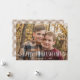 Rustikale Erntedank-Fotokarte mit dem Titel "Glückliches Erntedankfest" in weißem, handgeschriebenem Text mit Weizenverzierung. Personalisieren Sie die Vorderseite der niedlichen Erntedank-Karte, indem Sie ein Foto, Ihre Namen und das Jahr hinzufügen. Die Karte zeigt ein kariertes Aquarellmuster in Braun- und Beigetönen an.