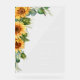 Rustikales Brautparty-Begrüßungsschild mit einem Aquarellbouquet mit Sonnenblumenfloralen und Eukalyptusgrün, einem schicken weißen Kalligrafieschrift und eleganter weißer Serifentypografie.