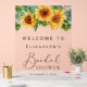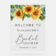 Rustikales, klares Acryl-Brautparty-Begrüßungsschild mit einem Aquarellbouquet aus Sonnenblumenfloralen und Eukalyptusgrün, einer schicken Kalligraphie-Schrift und eleganter Serifentypografie.