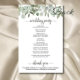 Diese Hochzeitsprogramme sind elegant und geschmackvoll, aber dennoch preisgünstig. Das Design ist mit handgemalten Aquarellfarben-Blätter aus Eukalyptus und Gartenblättern in Minz-, Moos- und Salbei-Grün-Tönen gestaltet. Die Typografie zeigt eine laky Skriptkalligraphie, und es gibt Raum für Details über die Zeremonie, das Brautparty, und ein kurzes Dankeschön.