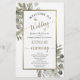 Diese Hochzeitsprogramme sind elegant und geschmackvoll, aber dennoch preisgünstig. Das Design besteht aus einem goldenen Rahmen aus Imitaten mit handgemalten Aquarellteilen aus Kiefernästen und Eukalyptus-Blätter in gedämpften Farbtönen von Salbei, Grau und Gold. Die Typografie zeigt eine laky Skriptkalligraphie, und es gibt Raum für Details über die Zeremonie, das Brautparty, und ein kurzes Dankeschön.