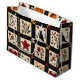 Diese Geschenktasche zeigt ein rustikales, quilt inspiriert Muster, das in Quadraten und rechteckigen Blöcken mit warmen Herbstmotiven angeordnet ist. Das Patchwork umfasst Kürbisse, einen schwarzen Vogel mit rötlicher Brust, Herzen, rote Sterne und blumengeschmückte Äste in erdigen Rot-, Orange- und Brauntönen. Geometrische Akzente wie karierte und Kreuzstickertexturen tragen zum handgefertigten Gefühl bei. Dieses gemütliche Bauernhaus in Schwarz, Creme und Herbsttönen ist perfekt für die Herbstdekoration, den ursprünglichen Landstil und den Charme der rustikalen Ernte.