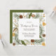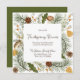 Rustikale Erntedank Dinner Einladung, mit einem einfachen Herbst Winter Wald Arrangement mit wilden Blume, erdigen Pilzen, Kiefern Blätter, Pinecone und Herbstlaub. Individuell anpassbare Einladungsdetails für Erntedank.