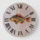 Eine rustikale Hütte mit großer römischer Numeraluhr, nur für seinen Fisch auf einem Holzboden.
