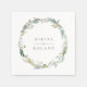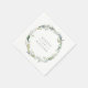 Rustikaler Aquarellkranz aus Waldblättern, personalisierte Papierservietten. Der Kranz ist in hübschen Farbtönen grün, braun und mattiert in Blues gehalten.