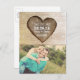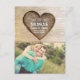 Vintages rustikales Land Save the Date Postkarte mit alten Baumschnitzereien Herz und Ihr persönliches Foto.
