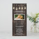 Rustikales Foto Barn Wood Mason Jar Wedding Programs - mit bedrucktem Stallholz oder holzgeschliffenem Hintergrund mit Maurerkirschen und Saitenleuchten oben. Auf der Rückseite befindet sich auch der Holzfußboden. Sie können das Foto des Demopaares in eines Ihrer eigenen ändern.