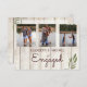 Rustikaler Chic Einladungen in schlichter und moderner Verlobung. 3 Fotos können durch eigene ersetzt werden. Ein einfaches Blatt weist auf das rustikale Design hin. Die Typografie ist in einem modernen Schriftart All text ist leicht zu ändern, um Ihre eigenen Informationen hinzuzufügen. Diese individuelle Einladung ist eigenständig, aber sie ist Teil einer Hochzeitssuite von Just Fine Designs.