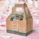 Dieses Design bietet einen rustikalen Holzputz-Hintergrund mit dem Foto Ihres Ehepaares. Der rustikal-braune Holzboden wird durch den weißen Text und Ihr persönliches Foto ergänzt, das auf dem Holzboden mit rustikalen, rostenden Bolzen befestigt ist. Die Brauntöne des Holzkorns schaffen ein rustikales Landhausgefühl wie Garten. Elegantes Hochzeitsgunst-Box-Design mit modernen Elementen. Auch die passenden Hochzeitseinladungen und andere Schreibwaren sind verfügbar.