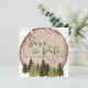 Diese wunderschöne, zweiseitige Waldlandschaft Save the Date wird Ihre Gäste beeindrucken. Das wunderschöne Aquarellbild zeigt eine rustikale Holzscheibe, die mit Licht im Freien und Aquarellwald in verschiedenen eleganten Jägertönen, dunklem Schokoladenbraun und Tanschattierungen geschichtet ist. Vergiss nicht, das Foto deiner Verlobung auf die Rückseite zu legen. Klicken Sie auf das Tool Bearbeiten mit dem Design, um weitere Änderungen an dieser Einladung vorzunehmen.