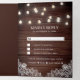 Erleben Sie Ihren Gast mit dieser eleganten Hochzeitseinladung mit schönen Streichlichtlampen und weißer Spitzen mit moderner Typografie auf rustikalem Stallholzhintergrund mit abnehmbarer RSVP-Karte. Fügen Sie einfach Ihre Veranstaltungsdetails zu dieser leicht zu bedienenden Vorlage hinzu und schmücken Sie diese Karte mit Ihren bevorzugten Fotos und machen sie zu einer einzigartigen personalisierten Einladung.