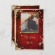 Schicken Sie diese wunderschöne Hochzeitskarte "Danke" an alle Ihre Fotos und Freunde, um ihnen freundlich zu danken. Der knallrote rustikale Hintergrund ist so schicke Ausstrahlung. Das ist eine hübsche und Vintag aussehende Karte. In Imitaten vergoldet Glitzer zu Set den Ton für romantische und klassische Eleganz. Gold Splashes beenden diese hübsche Hochzeit "Danke" Note. Schön für jede Jahreszeit.