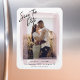 Rustikal inspiriert Fotopapier speichern den Datums-Magneten, mit Platz für Ihr Lieblingspaare-Foto und ergänzt durch eine handgeschriebene Typografie und einen rot-rosa Wasserfarbenpinsel. Eine tolle Möglichkeit, Ihre Familie und Freunde über Ihre bevorstehende Hochzeitsfeier lassen.