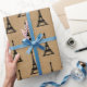 Diese eleganten, rustikalen Pariser Ausrüstungsbeschreibungen, die der Eiffelturm im Schwarzen in einem schicken Muster vereinbarte und ein Leinwandblickmuster als der Hintergrund. Sehr französisches Vintages!