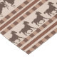 Dieses fette Muster zeigt galoppierende Silhouetten von Pferden in kräftigen Brauntönen, die in sich wiederholenden horizontalen Reihen angeordnet sind. Das Design ist mit Schachbrettrahmen und abwechselnden Streifen in warmen Bräunungen, Beige und Kastanien unterstrichen. Die dynamischen Pferdefiguren erfassen Bewegung und Energie, während das strukturierte Stripe-Layout Rhythmus und Ausgewogenheit verleiht. Mit seiner erdigen Farbenpalette und dem rustikalen Charme verbindet dieses Design inspirierte Themen mit klassischem Folkloredesign und macht es zu einer beeindruckenden Wahl für Reitsportler und Country-Liebhaber.